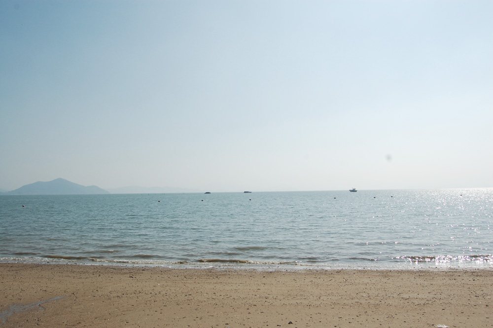 해수욕장 앞 바다에는 득량도가 떠 있고