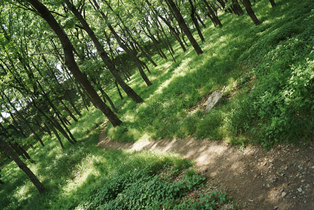 반달 모양으로 구릉을 깎아 군데군데 토석을 섞어가며