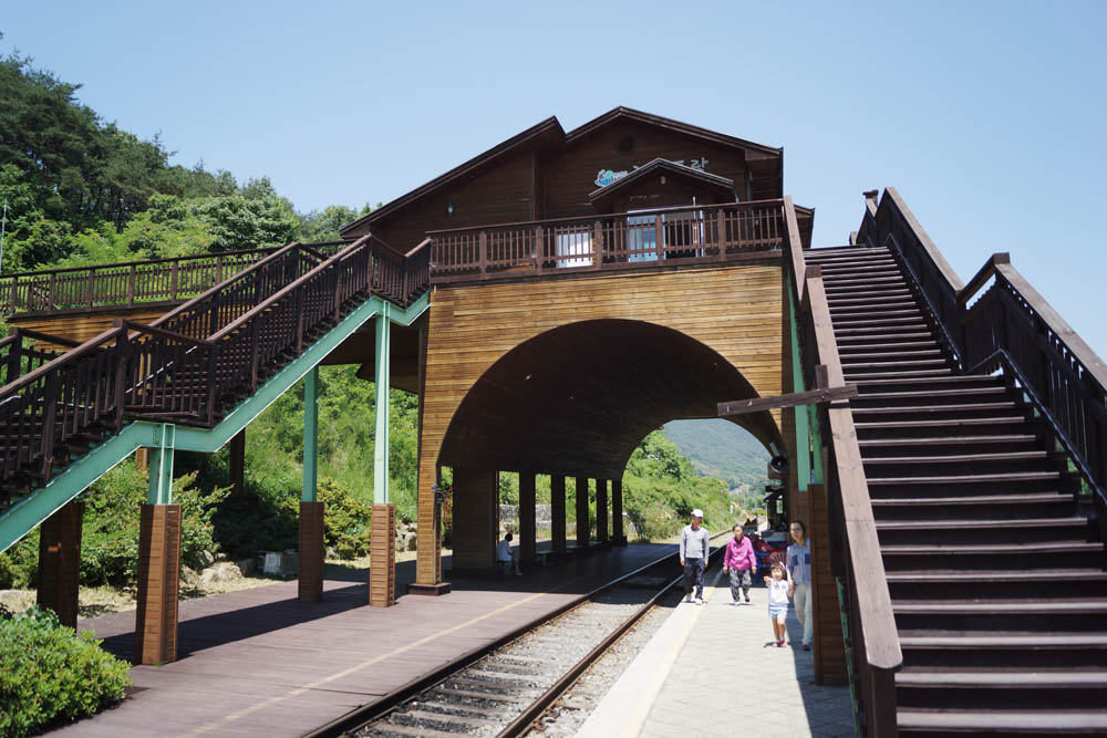 아래에 주차를 하고 계단을 통해 역으로 가 볼수 있어요~