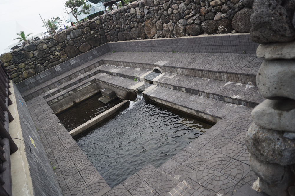 논짓물해수욕장은 바닷물과 민물이 어울리는 해안으로 검은 돌담을 쌓아 만든 천연해수욕장이다. 간만조의 흐름을 따라 자연스럽게 교차되는 해수와 간수는 가뭄에도 결코 마르지 않는 마을의 생명수다. 식수로도 사용되는 간수는 한여름에도 오랫동안 몸을 담그기 힘들 만큼 차갑다. 밀물에 밀려왔다 출구를 찾지 못하는 물고기를 맨손으로 잡는 특별한 체험도 할 수 있고 주변으로 자리하는 천연 민물 샤워장에 몸을 적신 후 시원한 바닷바람에 말려보자. 세상에서 가장 시원한 여름 피서법이 된다. [네이버 지식백과]