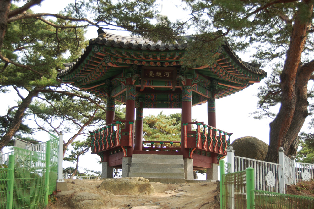 기암괴석으로 이루어진 해안가 절벽에 지어진 작은 정자로 조선의 개국공신인 하륜과 조준이