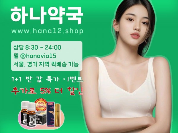 더불어 ✅하나약국✅에서는 알뜰한 고객님들을 위한 특별한 이벤트를 진행 중입니다. 특히 월요일은 하나데이! 1+1 반값 이벤트에 추가로 5% 더 할인되는 혜택을 누리실 수 있습니다. 또한 사은품으로 칙칙이와 여성흥분제도 제공하니, 꼭 확인해 보세요.