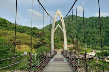 - 용추폭포는 높이 5m 정도의 작은 폭포이지만 수량은 많은 편이다. 흰 바위들과 어울려 물이 흐른다기보다는 바위가 흐른다는 느낌을 준다. 이 기암괴석을 이름하여 와룡추라 하듯이 흡사 하늘에서 내려온 용이 누워 있는 형상이다. 용추폭포는 가평읍에서 북서쪽으로 계곡을 따라 6km쯤 올라간 곳에 위치하며, 폭포가 있는 주차장에서 북서로 장장 10km가 넘게 이어지는 계곡을 따라 올라가면 올라갈수록 새로움을 느끼게 한다. 입구에서 30분쯤 올라간 지점의 크게 휘
