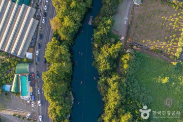- 쇠소깍산물관광농원은 제주도 동쪽의 대표적인 관광지 쇠소깍 바로 옆에 있다. 산물이란 글자 그대로 산과 물을 의미한다. 산에서 나는 물, 제주의 생명서 그 물이 산물이란다. 한의사 원장님이 운영하는 한라봉 하우스 안의 이색 박물관과 빈티지 카페로 쇠소깍 근처를 지나간다면 한번쯤 들러볼 만한 곳이다. 입구 주변으로 넓은 길가에 주차를 하고 내부 관람이 가능하다. 입구에 들어서면 앞마당에 다양한 제주 볼거리와 예쁜 꽃과 조형물을 배경으로 제주관광기념 사진을