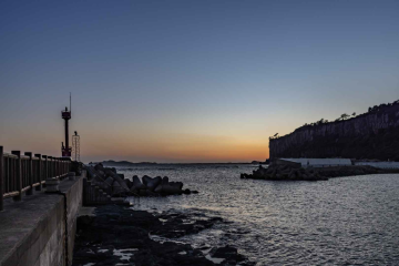 또한 해안가를 따라 걸어도 좋고, 아기자기한 마을 길을 따라 다녀도 좋은 곳이다. 박수기정을 옆으로 포구가 있는데 빨간 등대의 소녀상은 보는 사람마다 제주의 등대 중 손에 꼽을 만한 등대라고 하는 곳이