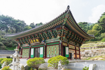가섭사는 정면 5칸, 측면 3칸의 겹처마 팔작지붕 목조와가의 극락보전과