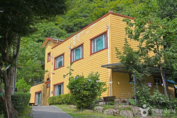 산기슭에는 푸른 숲이 우거져 있는데, 봄