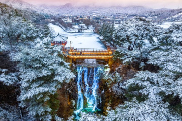 용추폭포 위에 설치한 유리전망대는 인도교로 바닥 부분에 투명 유리와 불투명 유리가 섞여 있는데, 철제 기둥에 설치된 센서를 지나면 불투명 유리가 투명 유리로 바뀌어 폭포가 내려다 보인다. 발아래 쏟아지는 시원한 물을 지켜보며 걸을 수 있어 마치 폭포 위를 산책하는 듯한 아찔함과 시원스레 쏟아지는 물을 바라보며 스트레스를 해소할 수 있는 곳이다. 폭포는 아래에서 바라보는 경우가 일반적이라, 발아래 떨어지는 물줄기를 보는 느낌이 색다르다. 특히, 계절마다 다른 매력을 선사하며, 사계절 내내 다양한 풍경을 즐길 수 있어 많은 이들의 발길을 끌고 있다. 제천을 방문한다면 자연과 스릴을 동시에 만끽할 수 있는 용추폭포 유리전망대를 추천한다.
