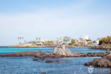 - 제주시에 위치한 곽지해수욕장은 입지가 좋아 주변에 청소년 수련장이 설치되고 단체 피서객이 많이 찾는 제주 명소이다. 곽지리는 선사시대의 패총이 발견되었을 정도로 유서 깊은 마을이다. 지금의 곽지해수욕장은 옛날에 마을이 들어서 있던 곳이었으나, 어느 날 갑자기 모래에 파묻혔다는 전설이 전해온다. 곽지해수욕장 끝머리에는 과물노천탕이 있다. 과물은 한라산에서 흘러내리기 시작한 물이 땅속으로 스며들어 100리를 내려와 곽오름을 배경으로 바다에서 솟는 달콤한 물