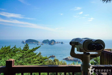 해변은 까만 몽돌과 아담한 포구, 깨끗한 바닷물, 앞바다에 떠 있는 크고 작은 섬들로 경치가 좋다. 영화 ‘은행나무 침대’를 찍은 촬영지이기도 하다.