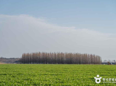 군산에서 옥녀 교차로는 SNS 인생 사진 명소로 유명하다. 초록의 청보리밭이 드넓게 펼쳐진 가운데 메타세쿼이아 군락이 포인트로 자리 잡고 있는 풍경을 담으러 전국에서 찾고 있다. 푸르른 하늘과 청보리밭의 색감은 청량하고 시원한 이미지를 연출한다.
