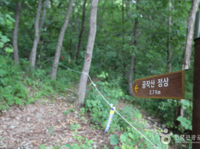 홍천군 화촌면 및 영귀미면에 걸쳐 있는 산으로, 높이 887.4 m 정상에서부터 뻗어나간 능선이 마치 공작의 날개처럼 펼쳐져 있다고 하여 공작산이라는 이름이 붙었다. 공작산은 산림청 100대 명산으로 꼽힐 만큼 경관이 뛰어난 곳이다. 정상에서 바라보면 홍천군 일원이 한눈에 들어오며, 서남쪽 능선 약 6km 아래에 있는 수타사와 노천리까지 이어지는 약 8km의 수타계곡은 갖가지 멋진 암벽들이 장관을 이룬다. 봄에는 철쭉, 가을철에는 노송과 함께 깎아 지른 듯한 바위의 모습, 그리고 단풍이 보는 이의 마음을 사로잡는다. 눈 덮인 겨울 산 역시 등산객들을 매료시키는 곳이기도 하다. 공작산에는 다양한 등산코스가 있습니다. 가장 많이 이용하는 코스는 공작현주차장에서 출발하여 정상까지 2.7km 거리를 걷는 코스로 오르락 내리락이 많지만 비교적 쉬운 편이다. 수타사에서 출발하는 코스는 6.9km 거리로 험하고 경사가 높아서 힘든 편이다. 정상에 닿기 전 궁지기골과 문바위골이 보이는 전망대가 있으며, 그곳에서는 골짜기와 홍천군 일대를 시원하게 조망할 수 있다.