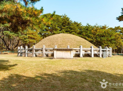 경주에서 불국사 방향으로 가는 길의 동남쪽 구릉 소나무숲 속에 자리하고 있는 신라 제33대 성덕왕(재위 701~737)의 무덤이다. 성덕왕은 신문왕의 아들로 본명은 융기이다. 당과 적극적인 교류를 하였으며 정치적으로 가장 안정된 신라의 전성기를 이끌어 나갔다. 『삼국사기』에 의하면 737년에 왕이 죽자 이거사(移車寺) 남쪽에 장사 지냈다고 하는데, 현재 왕릉 북쪽에 이거사로 추정되는 절터가 있다. 왕릉의 밑둘레는 46m, 높이는 5m이다. 무덤 아랫부분에는 둘레돌을 배치하여 무덤을 보호하도록 하였는데, 높이 90㎝ 정도의 돌(면석)을 두르고 그 위에 덮개돌인 갑석을 올렸다. 면석 사이에는 기둥 역할을 하는 탱석을 끼워 고정시켰으며, 그 바깥쪽에 삼각형의 돌을 세워 받치고 있다. 삼각형의 받침돌 사이에 12지신상이 배치되어 있는데 네모난 돌 위에 갑옷을 입고 무기를 들고 서 있는 모습의 조각이 심하게 파손되어 있다. 무덤 앞쪽에는 석상이 놓여있고 무덤 주위의 4모서리에는 돌사자를 배치하였다. 석상 앞쪽 양 옆으로 문인석·무인석 각 1쌍을 세웠던 것으로 보이나, 지금은 무인석 1개와 상반신만 남은 석인(石人) 1개가 남아 있다. 성덕왕릉에서 보이고 있는 석물의 사실적인 조각기법은 통일신라 초기 양식에 속하며, 왕릉은 통일신라시대의 왕릉으로서 완비된 모습을 갖추고 있다. (출처 : 국가유산청)