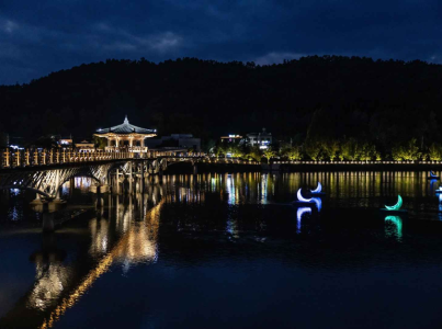 월영교란 명칭은 댐 건설로 수몰된 월영대가 이곳으로 오게된 인연과 월곡면, 음달골의 지명을 참고하여 지어지게 되었다. 낙동강을 감싸듯 하는 산세와 댐으로 이루어진 울타리 같은 지형은 밤하늘에 뜬 달을 마음속에 파고들게 한다. 월영교는 이런 자연 풍광을 드러내는 조형물이지만, 그보다 이 지역에 살았던 이응태 부부의 아름답고 숭고한 사랑을 오래도록 기념하고자 했다. 먼저 간 남편을 위해 아내의 머리카락으로 만든 한 켤레 미투리 모양을 이 다리 모습에 담았다. ◎ 한류의 매력을 만나는 여행 정보 - 예능 16기 영식, 현숙이 한복을 입고 산책을 즐기던 장소다. 야간 조명으로 한층 로맨틱해진 분위기 덕분인지, 두 사람은 상대방을 향한 자신의 마음을 다시 한 번 확신했다. 영식, 현숙처럼 달밤 산책을 즐겨도 좋지만, 호수 위를 유유히 떠다니는 문보트를 타고 강 위에서 월영교 풍경을 감상하면 특별한 추억을 남길 수 있다.