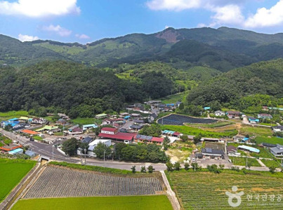 복사꽃 마을은 주문진 바닷가에서 4㎞ 내에 위치해 있는 숨은 진주와 같은 무공해 청정마을이다. 영동지역 최대 과수마을답게 사계절 풍부한 과일을 생산해 내고 농촌체험 휴양마을로 많은 관광객들이 찾는 곳이다. 전통놀이 체험, 과수원길 걷기 등 다양한 체험을 운영한다. 매년 봄에는 복사꽃축제가 열려 동네 곳곳에 복사꽃이 활짝 피어 진분홍빛으로 물든 마을을 볼 수 있고, 늦여름에는 허수아비축제를 풍성한 들녘의 정취를 느껴볼 수 있다.