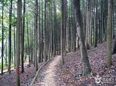 땅뫼산 둘레길은 황토숲길로 조성되어 있으며, 맨발로 걸을 수 있도록 발 씻는 곳을 마련해 두고 있다. 황토숲길은 1.7km에 걸쳐 조성되어 있어서 여유롭게 걷는다면 약 30분이면 완주할 수 있는 길이다. 빽빽한 편백림을 가로지르며 맨발에 닿는 황토의 차가운 감촉을 즐길 수 있는 황토숲길에는 숲 속 오솔길과 나무데크 산책로를 한참 걸어가면 호수 습지에서 자생하는 나무들을 만날 수 있다. 땅뫼산 생태숲은 회동수원지를 곁에 두고 걷는 길로 수려한 자연경관이 곳곳에 이어지는 아름다운 산책로이다. 맨발로 황토숲길을 걸으면 발바닥이 자극되어 혈액순환 개선, 소화 기능 개선, 기억력 증진, 불면증 예방 등 다양한 효과가 있다고 전해진다.