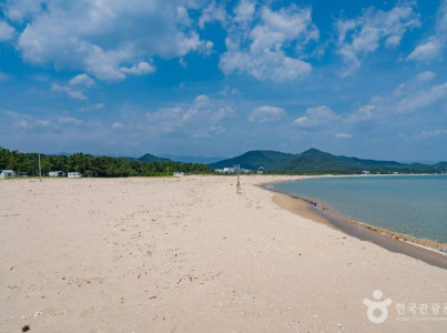 송지호 해수욕장은 백사장 길이 2㎞, 폭 100m에 물이 맑고 깊이가 얕으며, 근처에는 죽도와 설악산이 위치하고 있다. 바다 전면에는 대나무와 기암괴석이 어우러진 죽도가 놓여 있어 경관이 아름답기로 유명하다. 해수욕장 북쪽 500m 거리에 위치한 송지호는 동해안의 대표적인 천연 석호와 겨울철새인 고니의 도래지로도 유명한 곳이며, 담수와 바닷물이 만나는 곳으로 바닷물고기와 민물고기가 함께 서식하여 바다 낚시터로도 알려져 있다.