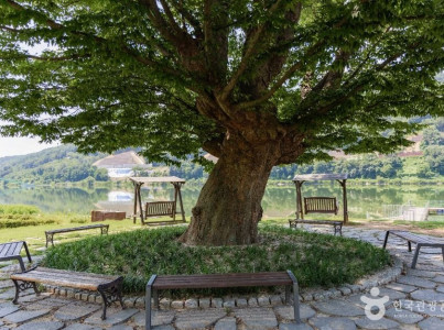 거례리사랑나무는 북한강을 따라 조성된 아를테마수목원에 위치한 400년 된 보호수로, '나 홀로 나무'라고도 불린다. 나무는 꽃밭과 잔디밭이 어우러진 북한강변 풍경 속에서 뛰어난 경관을 이룬다. 사랑나무 주변은 대규모 생태경관 숲으로 조성되어 있으며, 사계패랭이와 꽃무릇 등 다년생 초화류가 식재되어 있다. 원형광장 주변에는 해바라기 7만 그루가 심어져 독특한 풍경을 제공한다. 경관숲에는 암석초 화원, 수변 잔디공원, 전망데크, 목교, 부유 분수 등이 조성되어 생태학습 공간으로 활용된다.