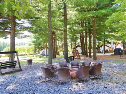 켄싱턴 프렌치 가든(Kensington Garden)은 2만 평 면적의 국내 최대 프랑스 콘셉트 정원이다. 프랑스 상트르주 앵드르에루아르에 위치한 ‘빌랑드리 자수정원’을 그대로 옮겨놓은 것으로 유명하다. 해발 700m 오대산의 빼어난 풍광을 배경 삼아 다양한 식물이 분포하고 있으며, 오리엔탈 가든, 채소 가든, 셰프의 정원 등 10개 테마정원으로 나누어져 있어 산책하기 좋은 환경으로 가꾸어져 있다. 자수 정원은 시간에 따라 변하는 사랑의 감정을 네 가지 패턴으로 표현되어 있다. 사계절 만개하는 여러해살이 풀이 가득한 4계절 정원 플라워 가든과 건강한 식재료를 준비하는 셰프의 가든까지 눈이 즐거운 이색 정원은 물론이며, 온 가족과 연인이 함께 걷기 좋은 은행나무 길과 아이들이 즐겁게 뛰 놀 수 있는 대왕참나무 길, 도시에서 벗어나 조용히 사색하기 좋은 느티나무 길도 조성되어 있다. 게다가 평창 진부면에서 공수한 100% 천연 마사토로 만든 흙 길은 맨발로 산책하기에도 좋다.