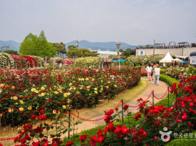 매년 봄이면 곡성 세계 장미꽃 축제가 열리는 섬진강장미공원은 섬진강 기차마을 단지 내에 있다. 약 1,004개 품종의 장미를 심어 전국에서 가장 많은 정원 장미 품종 및 수량을 자랑하고 있다. 특히 독일의 코르테스, 프랑스의 메이앙, 영국의 데이비스 오스틴, 하크니스 등 각 나라를 대표하는 품종들로 구성되어 있다. 이곳에서는 장미로 이뤄진 미로공원, 장미 터널이 눈길을 끈다.