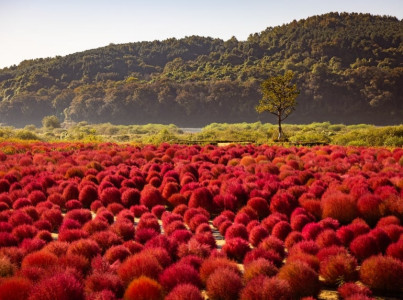 임진강 댑싸리정원은 연천 삼곶리 돌무지무덤 앞 약 3만㎡ 규모로 댑싸리 2만여 그루를 심어 정원으로 조성한 곳이다. 댑싸리 외에 황화 코스모스, 국화, 백일홍, 천일홍, 마리골드, 일일초, 칸나 등 다양한 꽃들도 볼 수 있다. ‘겸허, 청초한 미인’의 꽃말을 가진 댑싸리는 8월 말부터 불긋불긋해지고 9월 초 분홍색과 빨간색, 주황색으로 물들어 이색적인 분위기를 연출한다. 임진강 댑싸리정원은 가족, 연인과 조용히 자연을 즐기면서 인생 사진을 남길 수 있는 곳으로 서울 근교에 자리해 당일치기 여행이 가능하다.