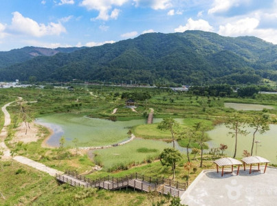 2012년 8월 개장한 중대물빛공원은 농업용수로 이용되던 인공 호수 홍중저수지에 산책길을 만들고 어린이 놀이시설, 운동시설, 분수광장 등을 설치한 수변 공원이다. 공원 내에는 장미터널, 연꽃로드, 아치목교, 자연학습장, 인공섬 등이 있고, 곳곳에 다양한 조형물과 포토존이 설치되어 있어 구경하는 재미가 있다.