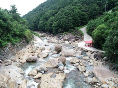 태백산(1,567m)에서 발원한 물이 응방산과 옥적봉을 지나 유곡리에 이르러 발달한 계곡이다. 나지막한 산세 때문에 골이 깊지 않고, 폭이 넓으며 계곡물 또한 깊지 않아 어린이를 동반한 피서지로 적합하다. 계곡에는 조선 중기 문신인 충재 권벌이 1526년(중종 21)에 지은 청암정이 있고 권벌의 종손인 청암 권동보가 유명한 봉화 중곰솔(춘양목)로 지은 석천정사가 있다. 계곡 아래에는 충재 권벌의 유적이 있는 닭실마을이 있고, 이 유적을 중심으로 계곡을 포함한 일대가 봉화 청암정과 석천계곡(명승 제60호)으로 지정되어 있다. 마을 이름이 닭실인 것은 동쪽의 옥적봉이 수탉을 닮고, 서쪽의 백운령이 암탉을 닮았기 때문이라고 한다. 주변에 한국에서 가장 넓은 청옥산자연휴양림(구역 면적 1억 53만㎡)과 열목어의 남방한계선인 백천계곡, 청량산도립공원 등을 비롯하여 봉화 여기저기에 한수정, 도암정, 갈천정, 야옹정, 사덕정 등 100여 채의 정자가 있다.