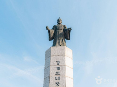 구리경찰서 맞은편에 위치한 광개토대왕 광장에는 광개토대왕비와 동상이 설치되어 있다. 광개토태왕비는 태왕이 붕어하신 뒤 2년째 되는 장수왕 3년(414년) 9월에 국내성 고도인 집안에 태왕릉과 함께 세워진 기념비로, 높이 6.39m 너비 1.35~2m에 달하는 동양 최대 크기의 사면석비이다. 태왕비는 방주형의 안산암질 응회암에 약간의 인공을 가한 것으로, 여기에 예서[?書]를 바탕으로 한 고구려 특유의 웅혼한 필체로 44행 1,775자의 문자가 음각되어 있어 당대 고구려사를 밝혀주는 최고의 금석문으로 평가된다. 광개토태왕 동상은 고구려의 국력을 동아시아 일대에 크게 떨친 광개토태왕의 얼굴 모습을 복원하여 만든 동상이다. 우리나라에서는 최초로 세워진 이 동상은 높이가 4.05m, 너비가 2.7m인 청동입상으로 2002년 3월 2일 세워졌다. 동상의 얼굴은 30대의 모습이며, 머리에는 관모를 쓰고 오른손에는 태양을 상징하는 세발까마귀(삼족오)가 새겨진 알을 들고 있다.