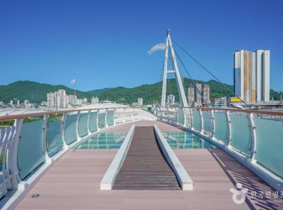 양산시는 관광자원화 활성화 방 안으로 만든 보행자 전용 교량인 양산천 구름다리는 중부동 양산 종합운동장에서 강서동 춘추공원을 연결하는 길이 257m, 너비 3m 규모로 되어있다. 이 교량은 사장교와 언더텐션교를 복합한 하이브리드교로서 백조 두 마리가 마주 보며 물 위에 앉아 있는 모습을 시각화했다. 이 구름다리에는 주통행로 양쪽으로 설치된 흔들림 체험공간과 보행로 바닥에 설치된 유리체험공간, 장애인이나 노약자가 이용 가능한 엘리베이터 등 특색 있는 시설물 설치가 되어 있다. 특히 야간 경관조명은 아름다운 양산천에 백조 두 마리가 노니는 형상을 감상할 수 있어 양산의 명물로써 손색이 없다. 영대교와 구름다리 중간지점에 길이 84.6m, 너비 3.2m의 음악분수대가 설치됐다. 이 분수대는 하천 분수대로서 전국 최대 규모이다. 360도 회전이 가능하고 컬러 레이저 시스템이 도입돼 분수 쇼와 함께 레이저쇼도 구경할 수 있다.