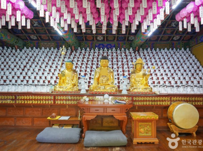 1923년에 세워진 연화사는 수정산(일명 금산) 기슭에 자리하고 있으며 고성 옥천사의 포교당이었으나 지금은 제12교구 본사 합천 해인사의 포교당이다. 보살들의 수행정진 도량으로 유명한 이곳은 초창기부터 여러 큰스님이 주석하며 수행 가풍으로 항상 30명 정도의 보살들이 정진을 계속하고 있는데 그 정진의 정도가 하도 깊어 스님들도 혀를 내두를 정도라고 한다. 연화사 도량에 가면 부도가 2기 있는데 스님의 것이 아닌 보살의 부도이다. 이 부도는 이곳에서 공부한 보살들이 입적하면서 남긴 정진의 결과물인데 공부의 깊이가 상당했을 뿐 아니라, 불자들의 귀감이 되어 이곳에 모셨다고 한다. 사찰의 상단에는 대웅전과 범종각, 요사채, 선방 등 종교 건물을 일자로 배치하고 하단에는 종무소, 유치원과 놀이터 등 부대시설을 배치하였다. 대웅전은 정면 5칸, 측면 3칸의 평면에 팔작지붕의 목조와가이며 화려한 단청이 시문되어 있으며 안에는 석가여래삼존상이 모셔져 있다.