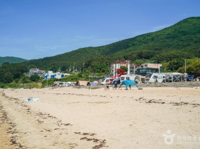 모래가 부드럽고 수심이 완만하며 수온도 해수욕하기에 가장 적당한 조건의 해수욕장이다. 내륙형 해안지대로 호수같이 조용한 분위기를 느낄 수 있는 곳으로 해수욕장 서쪽 해안에는 효자의 전설이 얽힌 윤돌섬이 자리 잡고 있다. 해수욕장 주변에는 멸치, 미역 등의 특산품을 파는 상점과 생선회를 즐길 수 있는 횟집, 민박집들이 늘어서 있으며, 바로 옆에 있는 구조라항에서는 내도, 외도, 해금강 등을 관광하는 유람선을 탈 수 있다. 주변에는 와현해수욕장과 구조라관광어촌마을, 거제어촌민속전시관, 외도보타니아, 윤돌섬 등의 관광명소가 많아 관광객들이 끊이지 않는 곳이다.