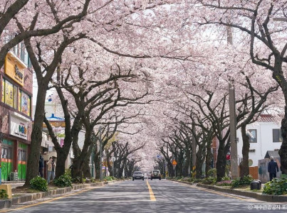 제주공항에서 자동차로 10분이면 도착할 수 있는 전농로는 하늘을 가득 메운 벚꽃터널이 인상적인 벚꽃길이다. 구도심인 삼도일동에 자리한 전농로는 약 왕복 2차선 도로로, 양쪽 도로변을 따라 제주 지역 자생종인 왕벚나무가 끝없이 이어져 있다. 짧게는 20년에서 많게는 100년 이상 된 이곳 왕벚나무들이 피우는 꽃은 제주에서도 아름다운 벚꽃명소로 유명하다. 해마다 봄이면 거리 가득 흐드러진 벚꽃이 그야말로 꽃 천지를 이룬다. 1992년부터 전농로를 배경으로 왕벚꽃축제도 열리고 있다. 연인과 데이트 혹은 가족들과 봄에 벚꽃구경을 하며 추억을 남길 수 있는 거리이다.