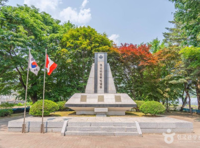 캐나다전투기념비는 가평군 북면 북면 이곡리 도로변에 아담한 공원처럼 조성되어 있다. 이 기념비는 북한 공산군의 불법 남침 시 한국의 안녕과 세계평화를 위하여 유엔군의 일원으로 파병된 캐나다군의 가평지구전투를 기념하여 1975년 11월 7일에 유엔한국참전국협회와 가평군민이 건립하였으며, 그 후 1983년 12월 30일에 가평군에서 재건립하였다. 높이 0.7m의 기단이 있고 그 위에 6.5m의 비가 중앙에 세워져 있으며 비 기단 중앙에 비문이 새겨져 있다. 기념비의 오른쪽에는 참전 약사가, 왼쪽에는 캐나다의 상징탑이 세워져 있다. 비문 내용은 ‘자유와 세계평화를 수호하기 위해 이 땅에서 공헌한 모든 캐나다군의 숭고한 희생정신을 길이 역사 속에 보전하기 위하여 이곳 옛 격전지에 이 기념비를 세우다.’라고 되어 있다. 캐나다군을 기리는 전투 참전비는 전국에서 유일하게 가평에만 있어서 더 의미가 크다. 한국전쟁 참전으로 사망 309명과 1,203명의 부상자, 그리고 32명의 실종자가 발생하였다. 이는 1차 대전 이후 최대의 희생이라고 한다. 낯선 땅에서 희생한 그들에게 다시 한번 감사함을 전하게 된다.