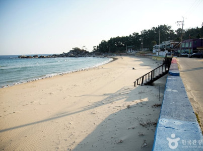 통일 안보공원의 동쪽에 위치한 총길이 400m의 조용한 해변이다. 희고 고운 백사장과 육지와 연결된 무송대가 있어 천혜의 절경을 이루는 곳이다. 무송대는 해변에 있는 작은 섬인데 소나무가 울창하다고 해서 이름을 무송대라 한다. 섬을 배경으로 한 일출이 매우 아름답지만 현재는 출입 불가다. 무송대까지 이어지는 해변을 기준으로 두 갈래로 나뉘는 바다에서는 한쪽은 성게, 고동, 소라를 채집할 수 있고 스노클링도 즐길 수 있다. 다른 한쪽은 활처럼 휘어진 해변에서 보트 타기와 수영을 할 수 있다. 해변가에 둥그런 바위가 있는데 영해 기준점이라고 적혀 있다. 이곳을 기준으로 우리나라 영해가 시작된다. 피서객이 많이 없어 한적한 편이며 버스가 이곳 앞의 차고지를 종점으로 하고 있어 대중교통 이용이 쉽다. 또한, 고성 금강산콘도와 민박이 주변에 있어 숙박이 편리하고 통일전망대에 인접해 있어 금강산을 볼 수 있다.