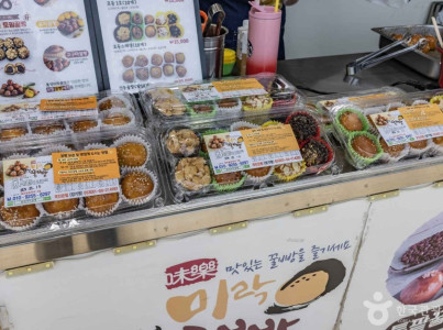 통영항 근처 중앙시장에 가면 다양한 상호를 가진 통영꿀빵 가게들이 줄지어 있다. 통영꿀빵은 따뜻한 통영기후에도 상하지 않고 오래 먹을 수 있도록 고안한 음식으로, 주로 이곳 뱃사람들이 즐겼던 간식이다. 밀가루 반죽 속에 팥앙금을 가득 채우고 기름으로 튀긴 후 겉에 꿀을 묻힌 이 음식은 현재 통영의 대표 간식으로 천안의 호두과자처럼 이름난 지역 명물이다. 통영꿀빵의 원조는 오미사 꿀빵으로 1960년대에 시작해 지금까지 이어져 오고 있으며, 지금은 하나의 명소가 되었다. 꿀빵 가게들이 늘어선 이 거리는 바로 앞에 통영항과 남해를 두고 있어 아름다운 경치를 자랑한다. 근처에 동피랑 마을, 국보인 통영 세병관 등 볼거리가 다양하고, 중앙시장과 충무김밥거리가 바로 옆에 있어 더욱 다양한 음식을 즐길 수 있다.