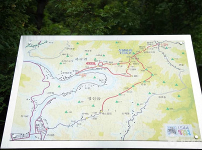 해발 1,006m 높이의 상정바위산은 정선아리랑 가사 중에 등장하는 남산으로 아우라지에서 보자면 남쪽에 자리잡고 있다. 상정바위산을 오르는 내내 가파른 길이 이어지며 정상에서는 조양강이 삼면으로 둘러싸여 흐르는 모습을 볼 수 있다. 정상에서는 한반도 지형을 닮은 지형을 볼 수 있다. ‘휘돌아 감고 도는 조양강 물줄기는 한반도를 둘러싼 동해, 남해, 서해로 보이며 강물에 둘러싸인 부분은 백두대간을 비롯한 산과 들처럼 보이며 맞은편을 지나는 42번 국도는 마치 중국과의 국경선처럼 보인다’는 안내글을 볼 수 있다. 상정바위산은 찾는 사람들이 많지 않아 정상으로 향하는 능선길은 가끔 풀과 숲에 가려져 보이지 않을 수도 있어 초보자들은 전문 등산인과 동행하는 것이 좋다.