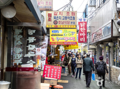 의류 상가가 꽉꽉 들어찬 빌딩들이 즐비한 동대문, 이제는 아시아 최대의 의류상가 지대라고 해도 지나치지 않는 곳이 동대문 주변 지역이다. 이곳이 지금의 모습을 갖추게 된 뒤에는 동대문 원단시장, 평화시장과 인근에 자리 잡은 시장 사람들이 있었다. 30여 년 전 그들의 허기를 달래주고 마음을 녹여주던 곳이 지금의 닭한마리 골목이었다. 지하철 4호선 동대문역 8, 9번 출구로 나와 직진하다가 기업은행 건물을 끼고 좌회전하면 일방 통행길이다. 그 길 오른쪽에는 오늘도 동대문 종합시장과 인근 시장으로 드나드는 물품을 나르는 택배 오토바이들이 즐비하게 서 있다. 그 길 중간쯤 오른쪽에 보면 덕성각이라는 중국요리집이 보이는데 그 골목으로 들어가면 닭한마리집들이 나온다. 그 골목 닭한마리집들은 짧게는 5년부터 길게는 30년이 넘는 세월 동안 그 자리를 지키고 있다. 그러나 지금의 식당이 있기 전 개인 집에서 닭칼국수를 팔던 시절까지 거슬러 올라가면 그 골목 닭한마리집의 역사는 30년 보다 훨씬 더 전으로 거슬러올라가야 한다. 당시 닭칼국수를 팔던 할머니집을 28년 전에 인수해서 지금까지 닭한마리를 팔던 식당 주인의 이야기를 들어보면 할머니 한 분이 지금의 닭한마리 식의 요리가 아니라 닭고기를 넣고 칼국수를 끓여 팔았다고 한다. 기와 얹은 한옥집 마루와 방에서 손님을 받았다. 지금의 사장은 그 집을 고스란히 인수해서 당시 마당이었던 곳에 홀을 만들고 식탁을 놓았다. 지금 남아 있는 집들 가운데서 가장 오래된 집은 ‘진옥화 닭한마리’이다. 그러나 식당에 불이 났고 2009년 2월 재건축 하였다. 이 집 또한 처음에는 지금의 닭한마리 식의 요리가 아니라 닭칼국수를 팔았다. 그러니까 동대문 닭한마리 골목 요리의 원조는 닭칼국수인 셈이다. 지금도 이 골목 식당 간판이나 현관, 유리창에는 닭칼국수라는 단어가 남아 있다. 또한 닭한마리와 곁들여 먹는 메뉴에 칼국수 사리가 남아 있는 것도 그 증거인 셈이다. 어떻게 보면 칼국수에 닭고기가 들어간 것에서 닭한마리를 육수에 넣고 끓이는 닭요리에 칼국수가 부재료로 들어가는, 주객이 전도된 요리이기도 하다. 닭한마리 요리는 집집마다 거의 비슷하다. 다른 게 있다면 닭고기를 찍어먹는 소스의 맛과 육수, 선택해 넣어 먹을 수 있는 부재료 등이다. 그래서 이 골목 집집마다 소스와 육수의 비빔을 반만 공개한다. 나머지는 비밀이다. 소스의 주재료인 고춧가루가 좋아야 한다. 맵기만한 고춧가루가 아니라 매우면서도 풍부한 미감과 감칠맛을 머금고 있어야 한다. 또한 육수에 들어가는 재료도 엄나무, 인삼 등 집 마다 다르다. 큰 양푼에 육수 가득 붓고 그 속에서 닭한마리를 통째로 끓인다. 닭은 살짝 삶아서 나오지만 식탁 위 간이 가스레인지 위에서도 푹 끓이는 게 좋다. 왜냐하면 감자와 떡, 인삼, 대추, 버섯 등 부재료들의 맛이 우러나 뒤엉켜 한 맛을 내야 하기 때문이다. 그렇게 끓고 나면 고기와 부재료를 건저 먹은 뒤 남은 육수에 칼국수 사리를 넣어 끓여 먹는 것으로 닭한마리의 만찬은 끝난다. 지금도 이 골목 단골의 반 이상이 동대문 주변 시장 사람들이다. 소문이 일본까지 퍼져 일본 여행자들도 꽤 많이 찾는다. 또한 맛골목을 좋아하는 젊은 연인들이 인터넷에서 정보를 얻고 팔품을 팔아 이 골목을 찾는다. 그들의 입맛에 30년 전 닭한마리 요리가 다시 태어나고 있다.