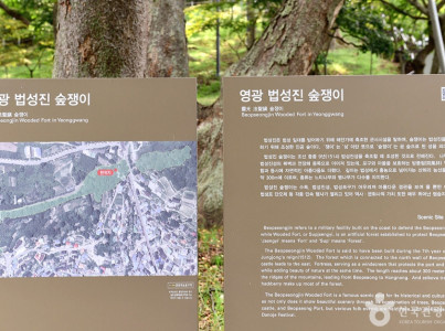 조선 중종 9년(1514년) 법성포와 법성포 마을을 보호하기 위해 법성진성을 축조하면서 조성된 인공숲이다. ‘쟁이’란 성이라는 뜻으로 ‘숲쟁이’라 하면 숲으로 된 성을 의미한다. 법성포 마을에서 홍농 방향의 지방 도로 고개 마루 부분 산 능선을 따라 약 300m에 걸쳐 조성되었다. 성벽을 따라 이어진 300년 이상 된 느티나무가 중심을 이루어 법성 포구와 마을을 보호하는 방품림의 역할을 해 왔으며 단오행사, 용왕제와 단오날 선유놀이 등 지역의 민속행사가 이곳에서 열려왔다. 법성진과 숲이 포구와 어우러져 아름다운 경관을 자아내고 민속행사가 이어져 내려오고 조선시대 수군 진의 옛 모습 등 역사적, 문화사적 가치가 뛰어난 명소이다. 원래 하나로 이어져 있었는데 지방도가 개설되면서 2개로 나뉘어 졌다. 현재는 도로 위로 두 개의 숲을 연결하는 부용교가 놓여있다.