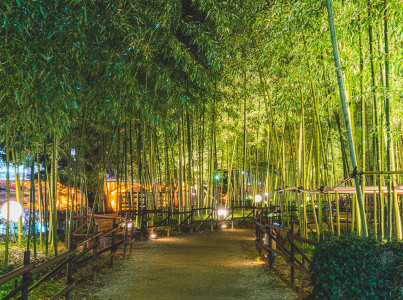남가람별빛길은 진주를 대표하는 관광지인 진주성 맞은편에 자리한다. 남강을 따라 길게 이어진 대나무 숲이 일 년 내내 싱그러운 초록빛을 뽐낸다. 산책로도 잘 다듬어져 있어 누구나 부담 없이 걷기 좋다. 한여름에는 하늘을 가릴 만큼 울창한 대나무 숲이 서늘한 그늘을 만들어준다. 이처럼 낮에는 시민들의 소중한 휴식처가 되어주던 대숲이 밤이면 환상적인 은하수를 선물한다. 대나무 잎에 빨강 파랑 초록의 작은 전구를 달아 마치 별빛처럼 반짝이는 하늘을 연출한다. 대나무 숲 사이로 보이는 진주성의 아름다운 야경이 더욱 낭만적인 분위기를 자아낸다. 산책로에는 달처럼 동그란 조명이 길을 밝혀준다. 해가 진 직후에 찾으면 보랏빛 하늘과 함께 인생 사진을 남기기에도 좋다.