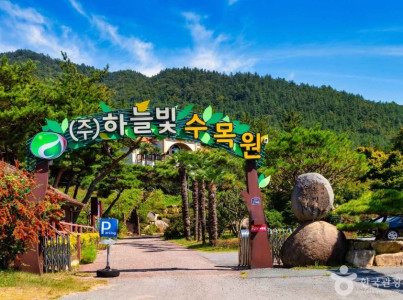 하늘빛수목원은 장흥에서 천관산 방향으로 8Km 지점의 장흥읍과 용산면 경계에 있는 함지봉(350m)이라는 산자락에 위치하고 있다. 10,000여 평의 명품 정원과 편백나무 등 2,000여 평에 산림이 빼곡히 들어서 있다. 때문에 일명 ‘치유의 숲’이라고 불리기도 한다. 이곳은 생태 폭포 주변이 가장 화려한데, 계곡을 따라 흐르는 물을 이용해 만들어진 분수 연못에는 시원한 폭포수가 흐르고 비단잉어, 송어, 철갑상어들을 마주할 수 있다. 또한 4~5월이면 원색의 형형색색의 화려한 튤립이 수목원을 장식한다. 하늘빛수목원의 이용 시설로는 명품 정원, 야생화 단지, 편백숲, 카페테리아 등이 있다.