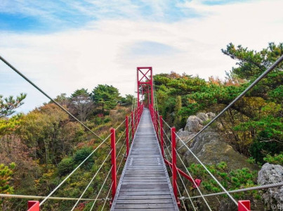 대이작도 부아산에 있는 구름다리이다. 백제 건국을 위해 비류가 이 산에 올랐다는 설화가 전해지는 부아산은 백성을 품는다는 뜻인 대이작도의 대표적인 산이다. 영험한 기운이 깃들어 있다 하여 천국으로 향하는 문이라고도 불린다. 산 정상의 높이는 159m이며, 마치 여인이 어린 아기를 등에 업고 서 있는 모양과 흡사하다고 해서 부아령산, 또는 부아산이라고 불린다. 부아산은 부부의 소중함과 사랑 이야기를 담은 영화 의 촬영지로 알려져 있다. 부아산 구름다리는 산 정상 부근에 길이 68m, 높이 7m의 다리를 설치하여 산행을 쉽게 도와준다. 이곳에 서면 태안반도가 한눈에 들어온다. 이 빨간 구름다리에는 이른 새벽, 부아산 신선들이 사람들의 눈을 피해 다리를 건너 천상으로 향한다는 전설이 전해지는데 사진가들에게 유명한 사진맛집으로 알려져 있다. 구름다리에서는 영화촬영지인 사승봉도와 모래섬, 섬마을 선생님의 배경지인 계남분교까지 한눈에 볼 수 있다. 주변에 부아산 봉수대, 삼신할매 약수터가 있어 같이 둘러보기 좋다.