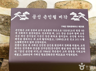 하나로마트 구례농협 본점 인근, 손인필의 옛 집터 자리에 난중일기 등 역사자료 고증에 따라 조선수군 재건의 여정이 담긴 벽화, 청동부조 조형물, 정자 등이 있는 조선수군재건출정공원이 조성되었다. 이 공원에 설치된 벽화에는 백의종군하던 이순신장군이 1597년 8월 3일 삼도수군통제사로 재임명된 이후부터 9월 16일까지 전남 일대에서 조선 수군을 재건해 명량대첩을 승리로 이끄는 44일간의 여정이 담겨 있다. 이때 이순신장군 휘하에는 손인필, 황대중을 비롯한 군관 9명과 병사 6명이 전부였다고 한다. 이때 조선수군을 재건하는데 이순신장군이 설치한 통제영 주둔지이자 조선 수군 재건을 결의한 출정소가 손인필의 집이었다고 한다. 군관 손인필은 이순신장군의 휘하에서 수군을 재건하는데 필요한 병참물자 조달과 군사 모집 역할을 수행했으며 그의 아들 손응남도 긴급한 정보를 전달하는 역할을 수행했다. 한편 손인필 비각 옆에는 큰 바위 하나가 자리하고 있는데 일명 이순신 바위로 불리면서 이순신장군이 구례에 머물렀을 당시 바위에 앉아 구국의 방향을 고뇌했다는 이야기도 담겨있으며 나라를 구하고자 고뇌한 이순신 장군의 뜻을 기리고자 정자를 짓고 구국정이라 이름 붙였다.
