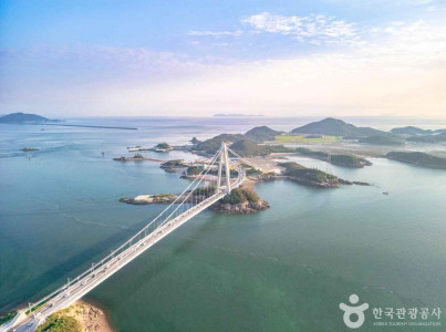고군산대교는 고군산군도에 있는 길이 400m의 다리로, 세계에서 가장 긴 외팔 현수교이다. 고군산군도에 설치된 6개 교량인 신시해안교, 고군산대교, 신시교, 무녀교, 선유교, 장자교 가운데 하나이다. 신시도와 무녀도를 연결하는 대교이다. 2009년부터 추진된 고군산군도연결도로사업의 일환으로 건설되었다. 한국에서 처음으로 시도된 1주탑 방식의 현수교이다. 대부분의 현수교는 두 개의 주탑(주케이블을 지탱하는 구조물)에 연결한 주케이블에서 수직으로 행어케이블(보조케이블)을 내려 교량 상판을 유지한다. 하지만 단등교는 한 개의 주탑에 연결한 주케이블에 행어케이블을 매달아 상판을 들어 올리는 방식으로 만들어졌다. 주탑의 높이는 약 110m로, 돛을 형상화한 D자형으로 만들어져 그 자체로 근사한 볼거리가 되고 있다.