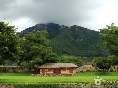 화수루라고도 불리던 조선시대 2층 누각 건물로 문화재명은 옥천재사이다. 옥천재사는 안동권씨의 영해 입향조 권책의 증손자인 권희언의 묘제를 수행하기 위해 지은 재사 건물로, 이 정자는 그의 다섯 아들들이 1676(숙종 2)에 건립하였다고 전해진다. 옥천재사의 누각인 화수루는 정면 5칸, 측면 2칸 규모의 맞배지붕 기와집이다 一자형의 2층 누각인데, 후면으로 ∩자형의 건물을 연접하여, 전체적으로 口자형의 평면을 이룬다. 화수루 하부 어칸에 문을 달아 통로로 사용하였고, 상부는 6칸 대청을 중심으로 좌우에 온돌방을 둔 중당협실형 평면 구조이며, 가구(架構)는 오량가이다. 누각 안으로 들어서면 작은 마당이 나온다. 화수루 후면의 건물은 부엌과 곳간으로 사용되었다. ※ 위 국가유산은 일반적으로 관람이 가능하나 소유주 등의 개인적인 사정으로 관람이 제한될 수도 있음