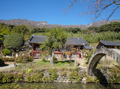 양산 극락암은 통도사의 여러 말사 중 하나이다. 통도사에서 서북쪽으로 1.5㎞ 떨어진 산속 암자이다. 고려 시대에 창건되어 조선 영조 때 철홍대사가 중창하였다는 기록이 전해진다. 1968년 이후 가람 전체를 경봉선사가 중건, 중수하였다. 풍수지리상으로 입지를 보면 연꽃이 물 위로 올라온 모양인 연화도수형의 지형에 자리 잡고 있다. 한강 이남의 제일가는 호국 선원이며 하안거와 동안거 도중에 일주일간 한숨도 자지 않고 깨어있는 용맹 정신이 끝나면 쉬지 않고 그 길로 등산을 하고 내려오는 것이 이곳의 전통이다. 극락암 안에 있는 극락영지와 홍교는 통도사 8경 중의 한 곳으로 경봉 스님이 71세에 탐욕과 노여움과 어리석음을 버리고 극락으로 가는 다리의 의미로 만들었다고 한다. 사계절 다 좋지만 봄에 피는 벚꽃이 유난히 아름다워 많은 사람이 찾아온다.