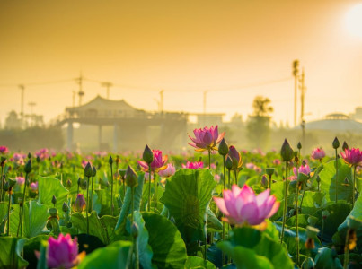 함안 연꽃테마파크는 옛 가야지구의 천연 늪지를 활용해 만든 자연 친화적인 테마공원이다. 함안군민들과 함안을 찾는 관광객들에게 아라가야의 특색 있는 휴식공간을 제공함으로써 사계절 관광객 유치와 군민의 삶의 질을 향상시킬 수 있는 친환경적인 테마공원을 조성하고자 2013년에 개장하게 되었다. 공원의 탄생 배경에는 700여 년 세월을 거슬러 올라가는 이야기가 있다. 2009년 5월 함안 성산산성(사적 제67호)에서 연꽃 씨앗이 출토되었는데, 연꽃 씨앗은 연대 추정 상 700여 년 전 고려 시대 것으로 밝혀졌다. 이듬해 2010년에 함안박물관에서 파종한 씨앗이 꽃을 피우는 기염을 토하며 또 한 번 세상을 놀라게 했다. 함안군은 이 연꽃의 이름을 아라가야라는 함안 역사에서 따와 ‘아라홍련’이라 지었다. 그리고 아라홍련의 부활을 기념해 연꽃을 주제로 한 공원을 조성한 것이 바로 함안 연꽃 테마파크다. 연꽃 주제 공원답게 홍련, 백련, 수련, 가시 연까지 다양한 연꽃을 감상할 수 있다. 특히 함안에서만 볼 수 있는 아라홍련도 있다. 연꽃의 개화 시기는 7월부터 8월까지이며, 연꽃 사이로 징검다리가 있어 가까이에서 꽃을 감상할 수 있다. 또한 곳곳에 포토존과 정자 쉼터가 마련되어 있어 여유 있게 즐길 수 있다.