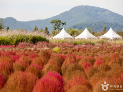 의령에 있는 호국 의병의 숲 친수공원은 낙동강과 남강이 합류하는 곳으로 임진왜란 당시 곽재우 장국이 의병을 이끌고 첫 승리를 한 곳이다. 이곳에 아름다운 수변 생태 공간을 만들어 후손에게 물려주고, 승리를 이끈 곽재우 장군의 기강 전투를 기념하기 위해 공원을 조성했다. 넓고 길게 뻗어 있는 길 중간중간 댑싸리, 메밀꽃, 핑크 뮬리, 코스모스 등 다양한 꽃을 감상할 수 있다. 또 넓은 주차장과 자전거 도로, 산책로, 낙동강을 바라볼 수 있는 전망 테크까지 갖추어 가족, 연인, 친구들과 함께 나들이하기 좋은 곳이다. 특히 가을이 되면 솜사탕 모양의 댑싸리(식물)가 가득 핀 호국 의병의 숲은 사진 찍기 좋은 곳으로 이름나 많은 사람이 찾고 있다.