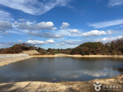 건등저수지는 원주시 문막읍에 위치한 저수지로 1945년에 건립되어 높이 17m, 길이 242m, 수심 15m로 이루어져 있다. 저수지 근처 호수마을은 주택가로 형성되어 있어 고요한 분위기를 자아낸다. 건등저수지를 따라 산책하면 뒤로 보이는 명봉산의 경관을 감상할 수 있다.