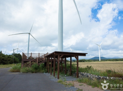 제주도 서귀포시 동남쪽 끝에 위치한 표선면 가시리는 제주도 내에서 아직 개발되지 않은 지역이라고 할 수 있는데 2009년 1월 국내 최초 지역주민 참여 방식으로 진행된 풍력발전단지 부지 선정 공모에서 최종 부지로 낙점됨에 따라 마을이 새롭게 변화되어 가고 있다. 가시리국산화풍력발전단지는 광활한 평원에 유채꽃단지가 조성되어 있는 가시리 공동목장에 들어서 있다. 봄이 되면 유채꽃과 벚꽃의 콜라보레이션을 즐길 수 있는 드라이브 코스로 유명한 녹산로 유채꽃길과 가까운 곳에 있다. 이곳 바람들판의 가을녁엔 빛나는 억새의 향연과 커다란 풍력발전기가 돌아가는 풍경을 볼 수 있는데 이국적인 아름다움을 선사한다. 이곳에서는 뒤로 보이는 풍력발전단지를 배경 삼아 한라산, 돌담과 어우러진 제주 조랑말들과 소들이 평온하게 풀을 뜯어 먹는 장면을 즐길 수 있다. 픙력단지 입구 왼쪽으로는 유채꽃프라자로 가는 길이고 이곳에서 차 한잔하며 카페 계단으로 올라가서 보는 목가적인 경치도 좋다. 카페 뒤쪽에도 유채꽃 단지가 있다.