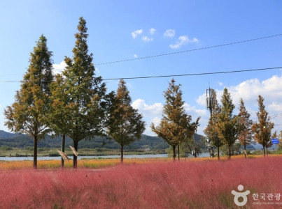 대구 달성군 논공꽃단지 안의 핑크뮬리 식재지이다. ‘논공삼거리 꽃단지 달성 꽃피다’라는 플래카드가 걸리고 봄에 꽃양귀비를 시작으로 수레국화, 가을에는 해바라기와 가을코스모스, 황화코스모스 등이 넓은 공간에 계절꽃이 식재되어 있어 장관을 이루고 있고 특히 대구에서 핑크뮬리 명소로 입소문이 나있다. 대구 여러 곳의 핑크뮬리 명소 중에 규모가 가장 넓으며 인근으로 낙동강이 흐르고 자전거도로가 바로 옆으로 위치하고 있어 가족 나들이 장소로 인기가 있다. 단, 해마다 식재되는 꽃 종류가 다를 수가 있다.